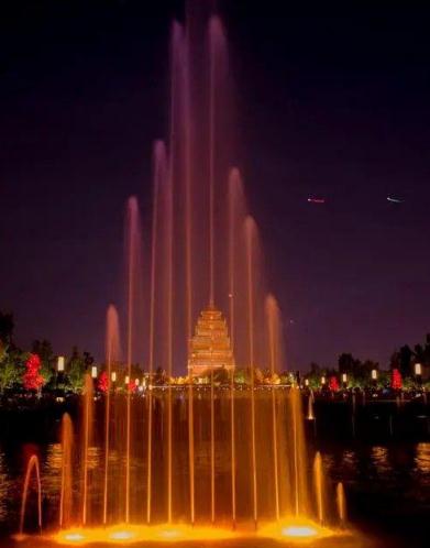 如今,亞洲最大的矩陣噴泉廣場已經建在大雁塔北側,近2萬平方米的噴泉水面已經創造了世界上最多的。廣場噴泉每天表演四場。太陽下山后,觀眾絡繹不絕。晚風習習,夏日涼盛夏大雁塔,夜音樂噴泉更加絢麗動感。洶涌的水柱像一個纖細的女孩,在音樂的伴奏下跳舞。伴隨著如此氣魄的音樂噴泉表演,仰望大雁塔,仿佛回到了唐朝的盛世。