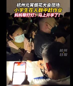 3、想必大家現(xiàn)在對于杭州小學(xué)生在煙花大會現(xiàn)場補作業(yè)方面的信息都是比較想了解的吧,那么針對于杭州小學(xué)生在煙花大會現(xiàn)場補作業(yè)方面的信息,歡迎和小編一起來探討孩子補作業(yè)的問題。