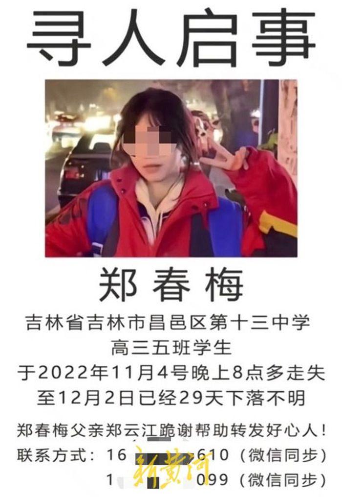 87天前的晚上8點(diǎn)多鐘,正在讀高三的鄭春梅突然從和同班同學(xué)合租的房子中外出,隨后失聯(lián)。鄭春梅父親從警方提供的監(jiān)控視頻中了解到,當(dāng)晚鄭春梅曾出現(xiàn)在吉林大橋,橋上一處監(jiān)控拍攝到一個模糊的身影,在短暫的助跑后越下欄桿。警方與當(dāng)?shù)鼐仍?duì)隨即展開搜救工作,但始終沒有結(jié)果,直到12月末松花江江面結(jié)冰,搜救困難加大,搜救工作不得不暫時中止。