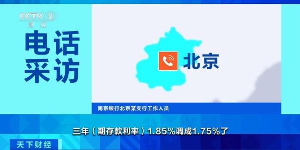 江蘇銀行北京某支行工作人員:三年期存款利率1.75%,之前三年期存款利率是1.85%,是上周三降的。