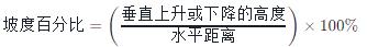 例如,如果一個(gè)坡道垂直上升了2米,而水平距離是10米,那么坡度百分比為: