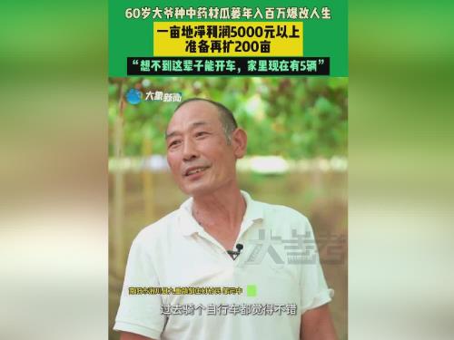這位大爺種植的瓜蔞每畝地的凈利潤超過5000元,他計劃進一步擴大種植面積至200畝。這位大爺表示,他從未想過自己這輩子能夠擁有汽車,而現(xiàn)在他家中有5輛汽車。