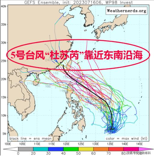 7月17日,有超計算機預測指出,發展中的臺風胚胎98W正在不斷吸收熱帶海洋的水汽能量,并且由于目前的海洋非常有利于新臺風發展,第4號臺風“泰利”登陸之后,第5號臺風“杜蘇芮”緊接著來。至此,預計在7月22日前后,第5號臺風“杜蘇芮”會逐漸靠近東南沿海,將給東南沿海地區帶來狂風暴雨天氣。