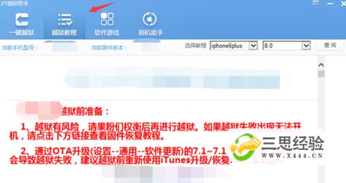 在打開它的選項界面后,這里我們可以看下它選項下的“越獄教程”,更好的熟悉和掌握該應用軟件的使用方法和教程。