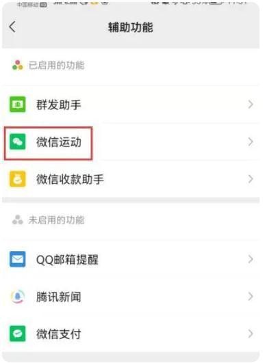 3、進入輔助功能,點擊微信運動。