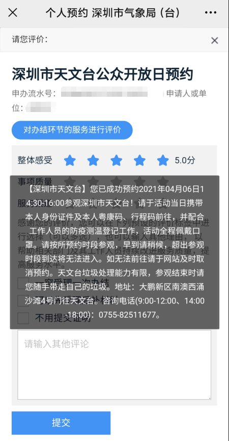 深圳天文臺預約說明:去深圳天文臺的天文樓、綜合樓、棧道上段,需要預約;去深圳天文臺棧道公共區域(即棧道下段),不需要預約。
