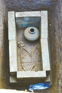 在埋藏動物骨骼的外藏坑中,還隨葬有一個陶俑、一個陶罐,部分陶罐中還有糧食。胡松梅認為,這象征著動物的“飼養(yǎng)員”和飼料。