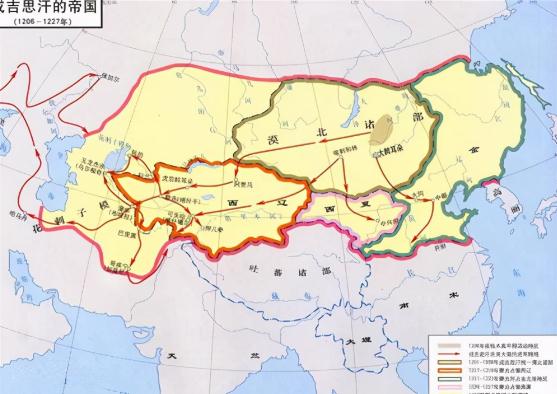 大蒙古國建立后,不斷向外擴張,他對他的兒子們說:天下地圖寬廣,河水眾多,你們盡可以各自去擴大營盤、征服邦國。緊接著,成吉思汗率先發動擴張戰爭,1218年滅亡西遼。