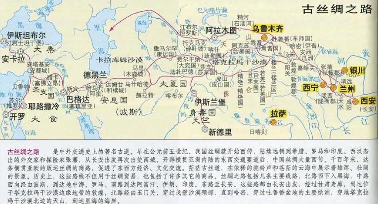 中國的絲綢之路,尤其是陸上絲綢之路,是一條古代的貿(mào)易和文化交流路線,它連接了東亞和地中海地區(qū),途經(jīng)多個(gè)國家和地區(qū)。陸上絲綢之路的主要路線大致經(jīng)過以下地方: