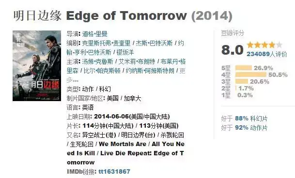 經典的死循環。阿湯哥每掛一次,就重新開始那一天的劇情,一次次重復,卻每次都有進步,就這么一點點打敗大BOSS,解開死循環。