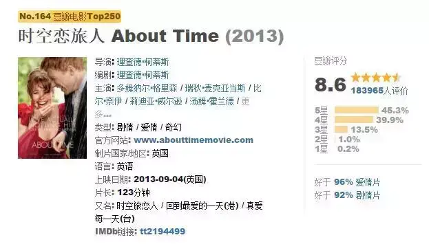 這部也是很多人熟知。很小清新,很溫情。男主發現自己有了穿越能力,于是不停的穿越,去改變,卻一點點發現如何與人相處,如何真正的度過每一天。與其說是一部科幻片,不如說是一碗有笑有愛的雞湯。