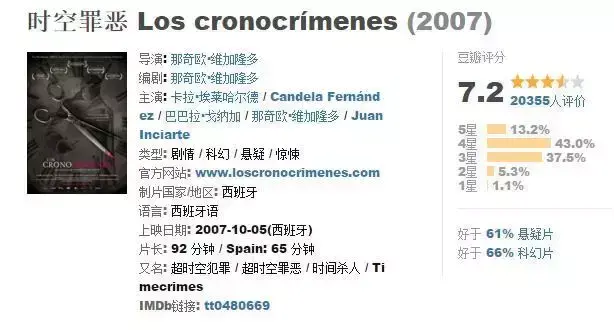 西班牙電影,經典的時空穿越+死循環,男主因為貪色引出的事端,劇情很給力,一步步吸引你,一點點講完整個故事,不斷穿越卻又能自圓其說,時間比《恐怖游輪》更早。