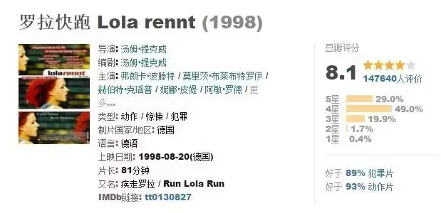 為了得到10馬克救曼尼,羅拉開始奔跑,同時,曼尼也在不停地打電話四處籌錢。 電影分別用三個整齊的20分鐘來表現羅拉奔跑,借錢,拯救曼尼的三種情況和結果,三次不同的經過皆因微小的細節改變。電影充滿懸疑,你永遠都不知道下一秒會發生什么,也不知道這一秒你會改變什么。