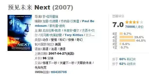 偽穿越,男主凱奇只是可以預見未來2分鐘的、與自己相關的情況,為阻止爆炸,最后凱奇憋了個大招。