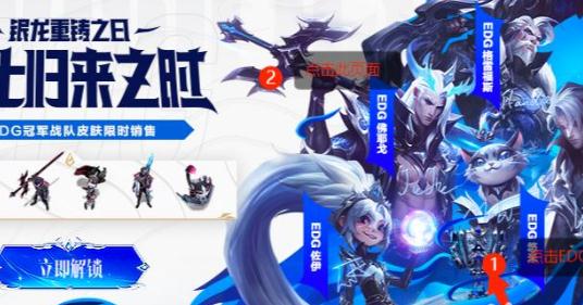 1.登陸英雄聯(lián)盟官網,進入后可以在網頁中看到“EDG冠軍戰(zhàn)隊皮膚”,并點擊出現(xiàn)的頁面。