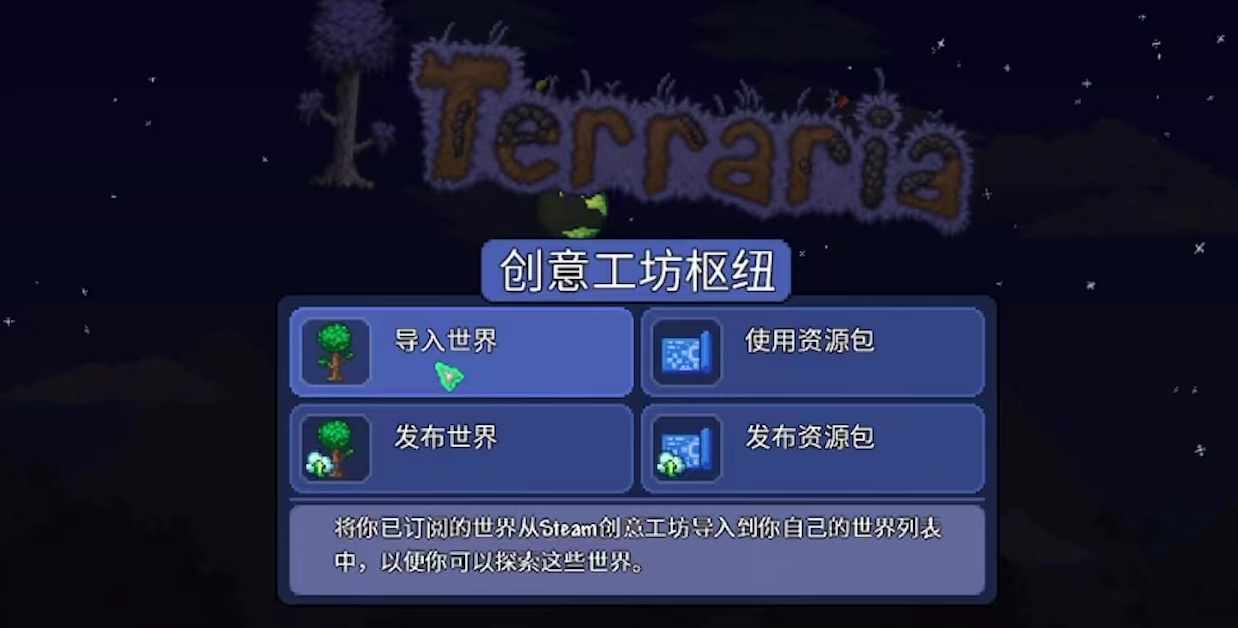 1、在下載好“創意工坊”后,進入到游戲中的主頁面位置,繼續點擊創意工坊,然后導入剛才下載好的石中劍地圖。