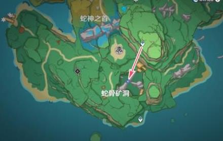 傳送至圖示傳送點后,直接飛行過去即可到達蛇骨礦洞的鳴神磐柱所在位置。