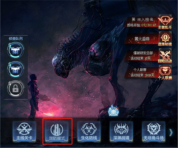 在冒險模式的戰(zhàn)場界面中,點擊“塔防模式”進入,關(guān)卡依然是原來的章節(jié)關(guān)卡。